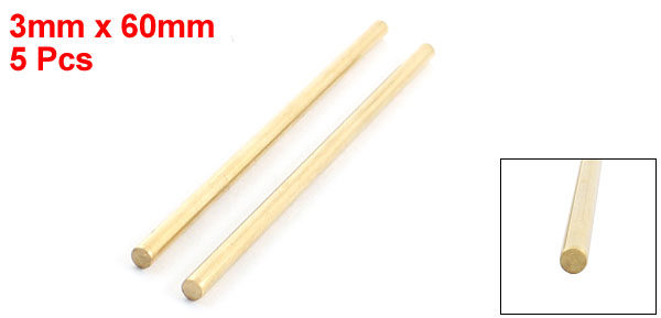 5Pcs 3mm Dia 60mm Length Brass Round Rod Shaft for RC Toy Car