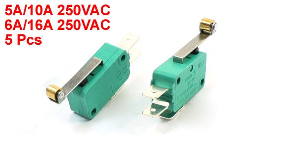 5Pcs 5A/10A/6A/16A 250VAC SPDT Long Hinge Roller Lever 3P Momentary Micro Switch