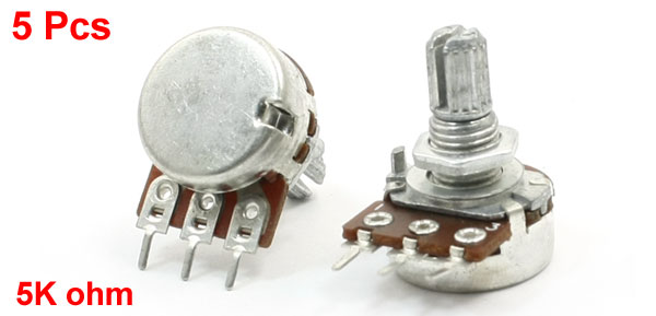5pcs 5K ohm 6mm Dia Shaft Type B Single Turn Taper Rotary Potentiometer
