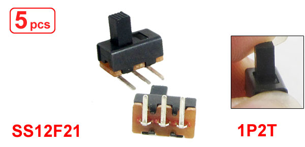 Life Test 10000 cycles/ minute Knob Size 3 x 3 x 5mm / 0.12" x 0.12" x 0.19"(L * W* H) Pin Pitch 3mm / 0.12" Main Body Size(not include Pins & Knob) 11 x 5 x 5.5mm / 0.43" x 0.2" x 0.22"(L * W* H) Overall Size 11 x 11.5 x 9mm / 0.43" x 0.45" x 0.35"(L * W* H) Material Plastic & Metal Color As picture shown Weight 7g Package 5 x Slide Switch - Reviews