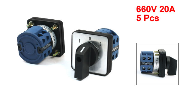 5Pcs 660V 20A 2-Pole 3-Position Square Panel Rotary Cam Changeover Switch