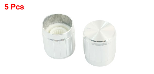 5Pcs 6mm Dia Knurled Shaft Silver Tone Potentiometer Rotary Knobs Caps