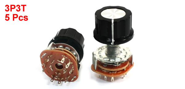 5Pcs 6mm Knurled Shaft 12Pin Rotary Switch Potentiometer 3-Pole 3-Position 3P3T