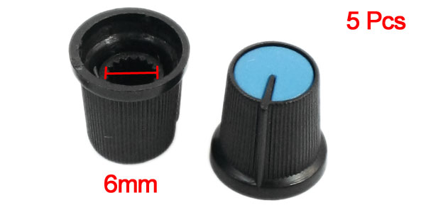 Product Name Potentiometer Knob Material Plastic Color Black, Blue Shaft Hole Dia. 6mm/ 0.24" Overall Size 13 x 15mm/ 0.5" x 0.6"(D*H) Weight 6g Package Included 5 x Potentiometer Knob - Reviews