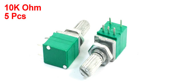 Product Name Rotary Potentiometer Technology Carbon Film Type Single Linear (B Type) Features Knurled Shaft Resistance Value 10K ohm Pin Numbers 5 Shaft Diameter 6mm / 0.24" Shaft Length 10mm / 0.4" Mounting Thread Dia 6.5mm / 0.26" Total Size 15 x 10 x 28mm / 0.59" x 0.4" x 1.1"(L*W*H) Color Green, Silver Tone Weight 30g Package Content 5 x Rotary Potentiometer - Reviews
