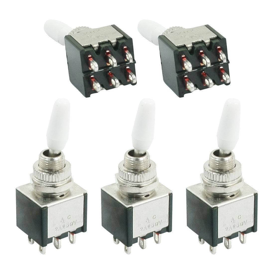 5Pcs 6mm Panel Cutout Dia 2 Position 2P2T Toggle Switch AC 250V 2A