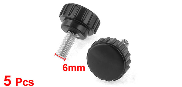 5pcs 6mmx15mm Male Threaded 22mm Dia Plastic Thumb Screw Knurled Knobs