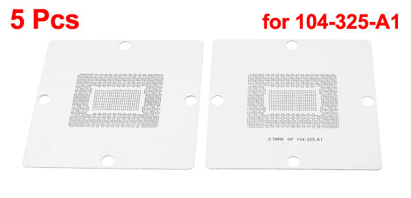 Product Name BGA Reballing Stencil Material Steel Fit for 104-325-A1 Size 80 x 80mm Solder Ball Dia 0.5mm Fix Hole Dia 6.5mm Weight 68g Package Content 5 x BGA Reballing Stencil - Reviews