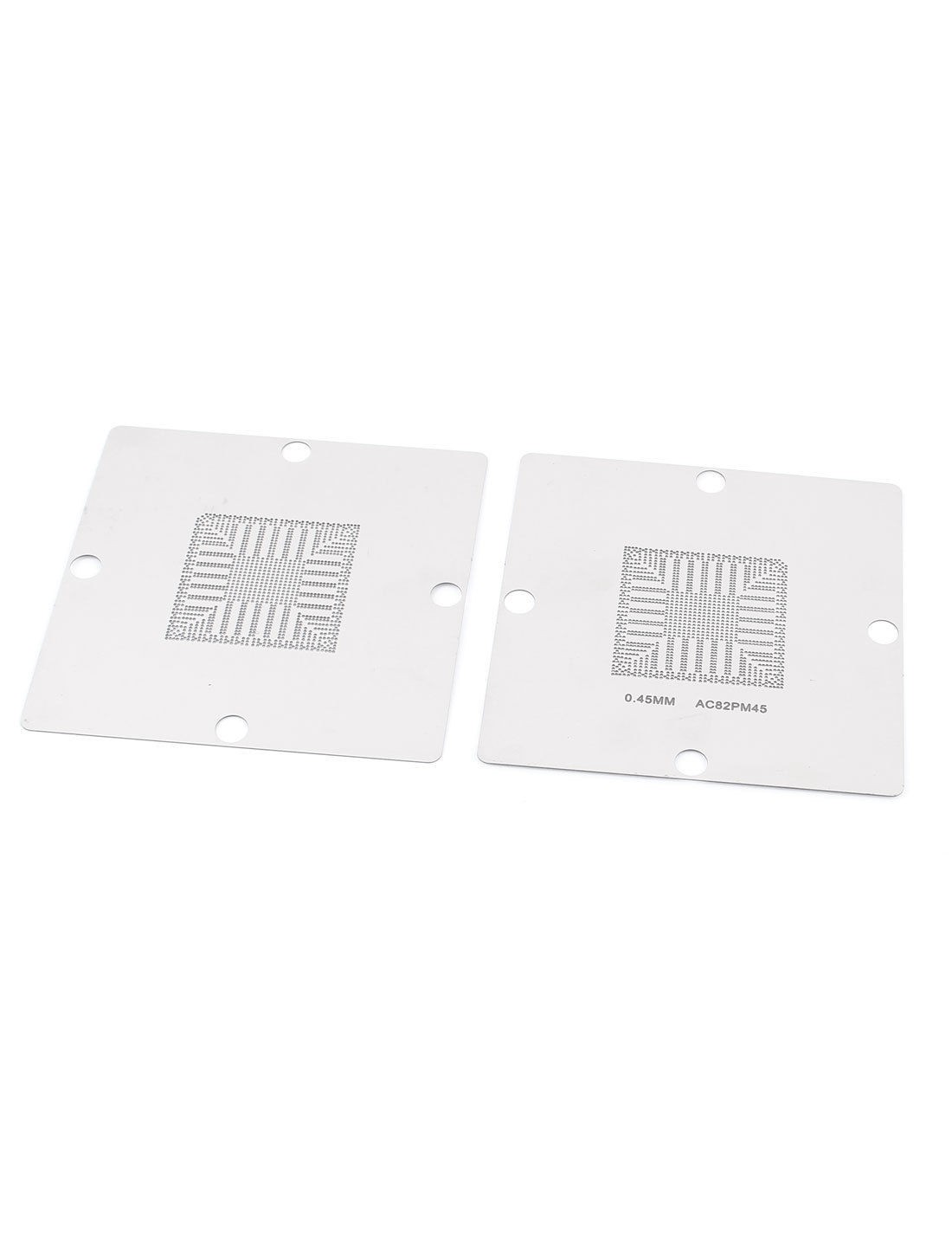 Product Name BGA Reballing Stencil Material Steel Fit for AC82PM45 Size 80 x 80mm Solder Ball Dia 0.45mm Fix Hole Dia 6.5mm Weight 70g Package Content 5 x BGA Reballing Stencil - Reviews