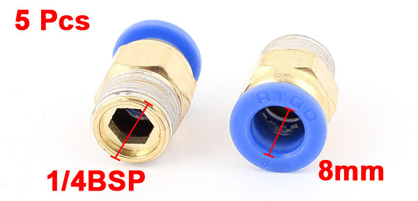 5pcs 8mm OD Push In Tube to 1/4BSP Air Pneumatic Quick Fitting Coupler Connector