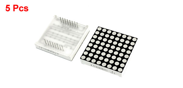 Product Name LED Lattice Tube Matrix Module Model 1588BS LED Display Red Dot Diameter(Each) 4mm Dot Numbers 8*8 Pin Numbers 16 Pins Type Common Cathode Total Size 38 x 38 x 12mm/ 1.5" x 1.5" x 0.47" (L*W*H) Material Plastic, Material Color Black, White Weight 53g Package Content 5 x LED Lattice Tube Matrix Modules - Reviews