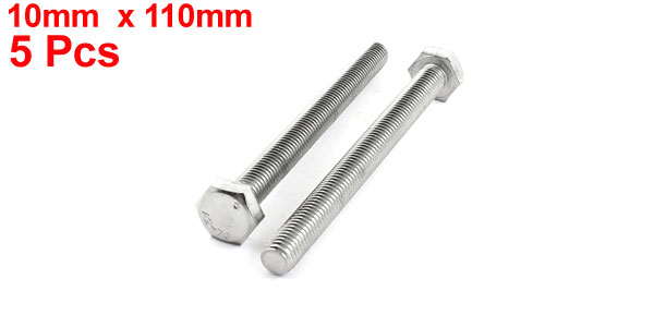 5Pcs A2-70 Stainless Steel Hex Hexgon Cap Srews 10mm x 110mm