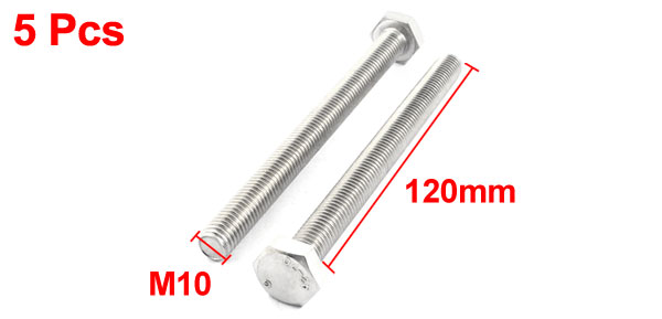 Product Name Hex Head Cap Screw Material A2-70 Stainless Steel Type M10 x 120mm Thread Dia 10mm/ 0.39"(M10) Thread Length 120mm / 4.7" Head Dia 19mm / 0.75" Color Silver Tone Weight 340g Package Content 5 x Hex Head Cap Screw - Reviews