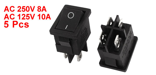 Product Name Rocker Switch Poles DPST Terminals 4 Pin (ON-OFF) Rating Voltage 8A AC250V, 10A AC125V Total Size 2.1 x 1.5 x 2.2cm / 0.83" x 0.6" x 0.86"(L* W *T) Mounting Dimension 1.8 x 1.2 x 2cm/0.7'' x 0.47'' x 0.8'' (L*W*Depth) Color Black Material Plastic, Metal Weigth 24g Package Content 5 x Rocker Switchs  - Reviews