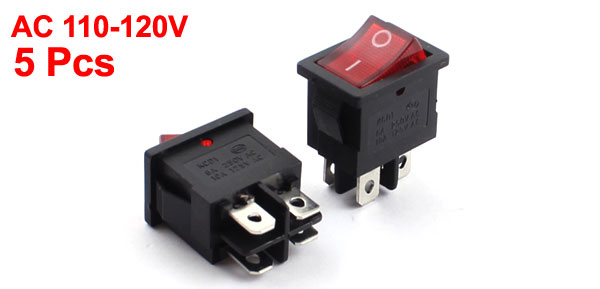 5pcs AC 110-120V Red Indicator Light DPST 2Position Snap in Rocker Switch