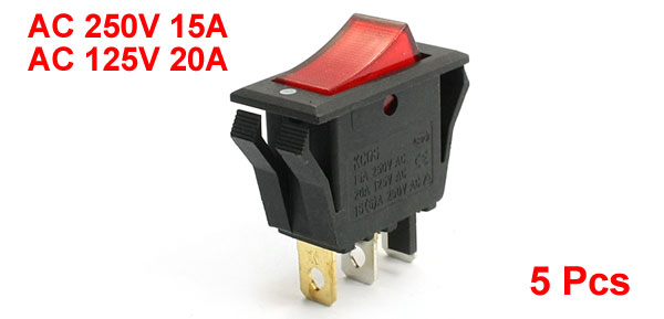 5pcs AC 125V 20A Red Light 3 Pin SPST ON/OFF Snap in Boat Rocker Switch