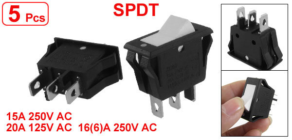 20A 125V AC 16(6)A 250V AC Total Size(Each One) 3.3 x 1.6 x 3.7cm/1.3'' x 0.6'' x 1.5'' (L*W*T) Mounting Dimension 2.5 x 1.2 x 3cm/1'' x 0.5'' x 1.2'' (L*W*Depth) Color Black, White Material Plastic & Metal Total Weight 39g Package Content 5 x Rocker Switch - Reviews