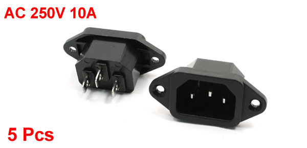 5Pcs AC 250V 10A IEC320 C14 Inlet 3 Pin Black Power Socket for Electric Cooker