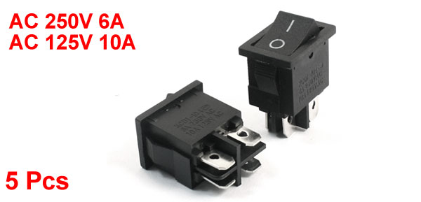 5pcs AC 250V/125V 6A/10A Latching DPST on/off 2-Position Rocker Switch