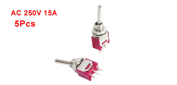 5pcs AC 250V 15A 3 Pins On/Off SPDT Latching Power Toggle Switch Burgundy