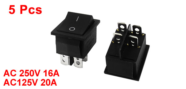 Main Color Black Brand DMiotech Electrical Rating AC 250V 16A /AC125V 20A Country of Manufacture CHINA Action Type Latching Model KCD4 Terminal 4 Pins Overall Size(Approx.) 30 x 25 x 20mm/1.2" x 1" x0.8"(L*W*H) Material Plastic, Metal Contact Type DPST(ON/OFF) Product Name Rocker Switch Net Weight 56g Mounting Size 30x18mm/1.2" x 0.7"(L*W) Package Content 5x Rocker Switch - Reviews