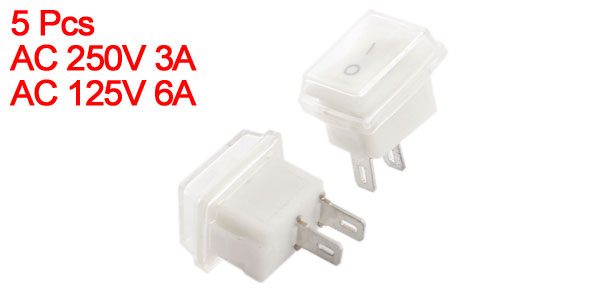 5Pcs AC 250V 3A 2 Pins SPST Mini Rocker Switch w Waterproof Cover