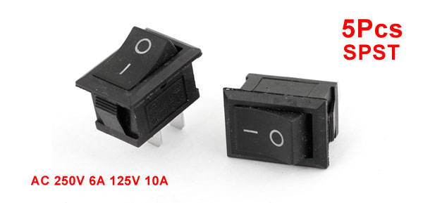 Product Name Rocker Switch Poles SPST Terminals 2 Pin (On-Off) Rating Voltage AC 250V 6A AC 125V 10A Total Size(Each One) 2 x 1.5 x 2.5cm/ 0.8" x 0.6" x 1"(L*W*T) Mounting Size 1.9 x 1.5 x 2.5cm/ 0.7" x 0.6" x 1"(L*W*T) Color Black Material Plastic, Metal Total Weight 16g Package Content 5 x Rocker Switch - Reviews