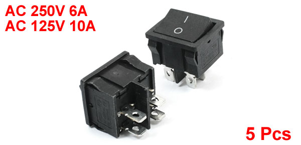 AC 125V 10ATotal Size(Each One) 24 x 21 x 27mm / 0.94" x 0.91" x 1.1"(L * W * T) Mounting Size 22 x 19 mm/ 0.87" x 0.75"(L*W) Color Black Material Plastic, Metal Total Weight 34g Package Content 5 x Rocker Switch - Reviews