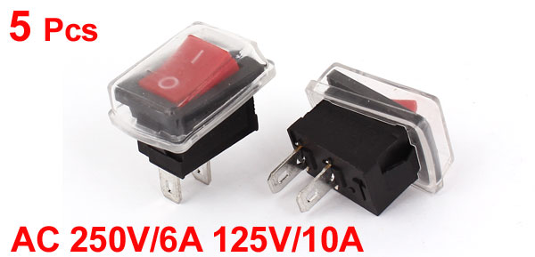 5PCS AC 250V/6A 125V/10A SPST 2 Pin ON/OFF Rocker Switch w Waterproof Cover