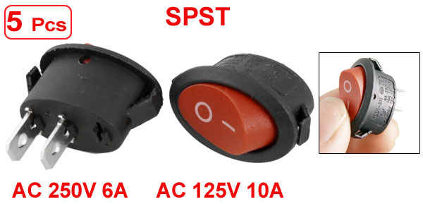 5pcs AC 6A/250V 10A/125V 2 Pin ON-OFF I/O SPST Snap in Oval Boat Rocker Switch