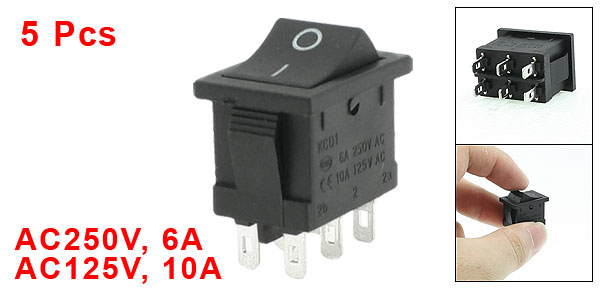 5pcs AC 6A/250V 10A/125V 6Pin DPDT Locking 2 Position Snap in Boat Rocker Switch
