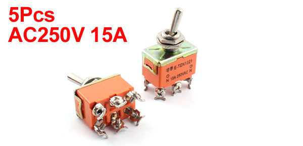 5Pcs AC250V 15A 12mm DPDT 6 Screw Terminals ON/ON Metal Toggle Switch Orange