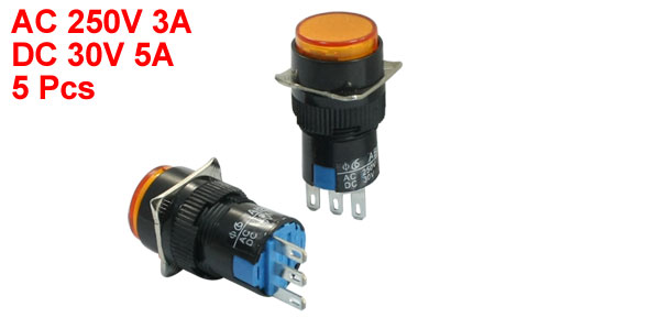 5Pcs AC250V/3A DC30V/5A 16mm Thread Dia SPDT Momentary Push Button Switch Orange