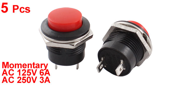 AC 250V 3ATerminals Quanlity 2 Pins Mounting Thread Diameter 16mm / 0.63" Button Diameter 13mm/ 0.51" Overall Size 19 x 19mm/ 0.78" x 0.78"(D*H) Material Plastic & Metal Color Red, Black Net Weight 28g Package Content 5 x Push Button Switch - Reviews