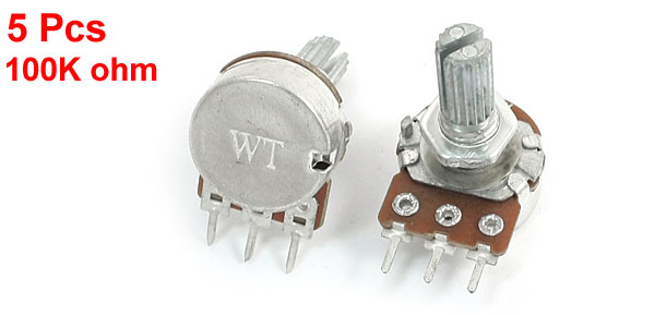 5Pcs B100K 100K Ohm 13mm Metal Rotating Shaft Rotary Audio Taper Potentiometers