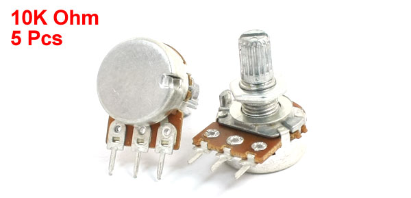 Product Name Potentiometer Resistance Value 10K ohm Adjustment Type Top Adjustment Type Single Linear (Type B) Features Knurled Shaft Shaft Diameter 6mm / 0.2" Shaft Length 8mm / 0.3" Mounting Thread Diameter 7mm / 0.3" Base Size 17 x 7.3mm / 0.67" x 0.29"(D*H) Total Height 24mm/0.94" Material Metal, Electronic Parts Net Weight 33g Package 5 x Potentiometer - Reviews