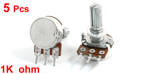 5Pcs B1K 1K Ohm 3 Terminals Single Linear Rotary Audio Taper Potentiometer