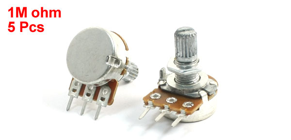 5Pcs B1M 8mm Metal Shaft 3 Terminals Rotary Single Linear Potentiometers