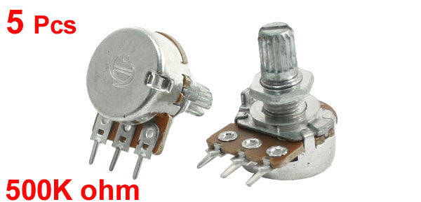 Product Name Potentiometer Resistance Value 500K ohm Adjustment Type Top Adjustment Type Single Linear (Type B) Features Knurled Shaft Shaft Diameter 6mm / 0.2" Shaft Length 8mm / 0.3" Mounting Thread Diameter 7mm / 0.3" Base Size 17 x 7.3mm / 0.67" x 0.29"(D*H) Total Height 24mm/0.94" Material Metal, Electronic Parts Net Weight 34g Package 5 x Potentiometer - Reviews