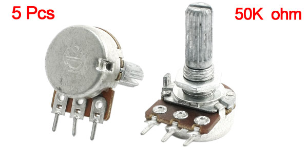 Product Name Potentiometer Resistance Value 50K ohm Adjustment Type Top Adjustment Type Single Linear (Type B) Features Knurled Shaft Shaft Diameter 6mm / 0.2" Shaft Length 13mm / 0.51" Mounting Thread Diameter 7mm / 0.3" Base Size 18 x 7.3mm / 0.71" x 0.29"(D*H) Total Height 29mm/1.14" Material Metal, Electronic Parts Net Weight 36g Package 5 x Potentiometer - Reviews