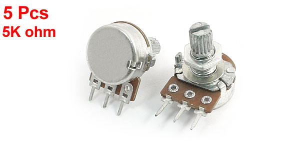 5Pcs B5K 3 Terminals Rotary Audio Single Linear Taper Potentiometers