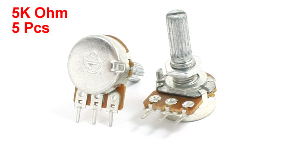 5Pcs B5K 5K Ohm 13mm Rotating Shaft Rotary Single Linear Potentiometers