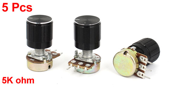 5Pcs B5K 5K Ohm 3 Terminals Rotary Audio B Type Potentiometer Pot