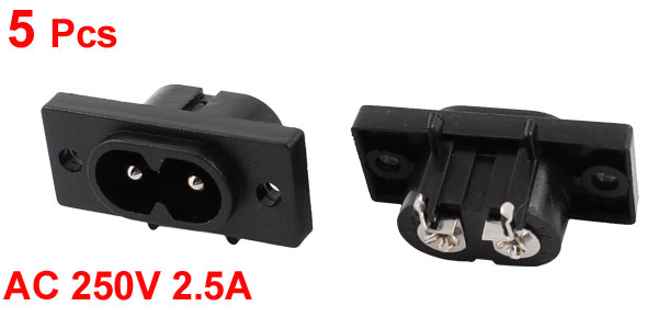 5pcs Black IEC320 C8 Male Plug Power Adapter Connector Socket AC 250V 2.5A