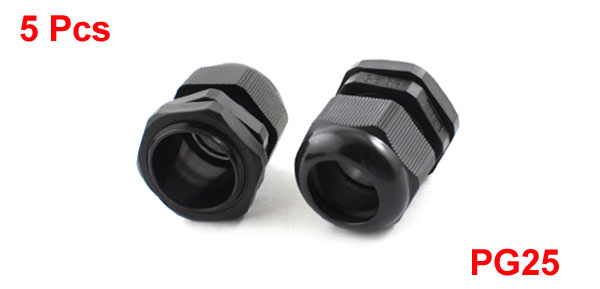 5pcs Black Nylon Waterproof PG25 Glands Connector for 16-21mm Dia Cable