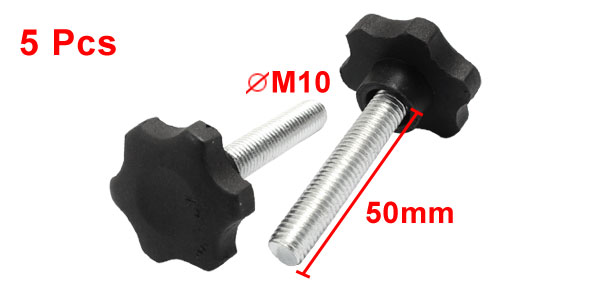 5pcs Black Plastic 40mm Head Diameter Star Clamping Knobs M10 x 50mm