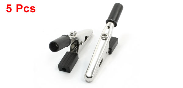 5pcs Black Plastic Coated Handle Alligator Clips Clamps 2.2" Length