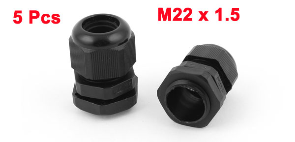 5pcs Black Plastic Waterproof Cable Glands Connectors M22 x 1.5