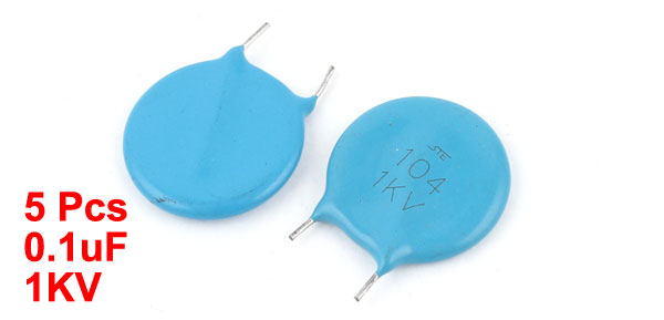 Product Name Ceramic Disc Capacitors Capacitance 0.1uF Rated Voltage 1KV Body Size 20 x 3mm/ 0.79" x 0.12" (D*T) Lead Space 10mm/ 0.39" Lead Length 4mm/0.16" Main Color Blue, Silver Tone Weight 10g Package Content 5Pcs x Ceramic Disc Capacitors - Reviews