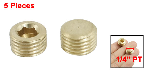 5Pcs Brass Internal Hex Head Socket 1/4" PT Thread Pipe Plug Fitting